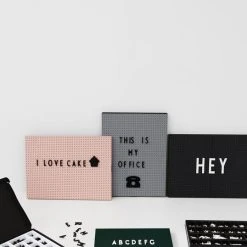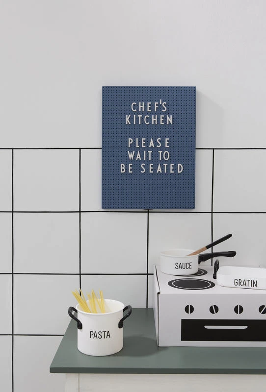The Design Letters brand offers us a complete range of objects decorated with stylish lettering. The cult-style font used was hand designed by the legendary Arne Jacobsen in 1937. Using decorative lettering of all sizes indoors is a big trend at the moment! Bring your walls to life with custom messages… A vintage design for this memo board which is reminiscent of the perforated boards used in workshops to hang tools! It has a grid in ABS on which you can freely hang letters, figures and symbols so as to write messages (letters, figures and symbols not included: sold separately). The letters, figures and symbols have pins which easily slide into the holes in the grid. Fixed to the wall like a panting, you can create your own art deco! Write what you want : Your daily mood, a loving message, something quirky or funny, a quote, or a mantra. You can even write your shipping list or meetings. This memo board fits just as well in a child’s bedroom: Kids can practice writing and have fun with letters. Please note, the letters, figures and symbols are not included with the board. You can purchase a set of letters & figures separately, in two sizes.