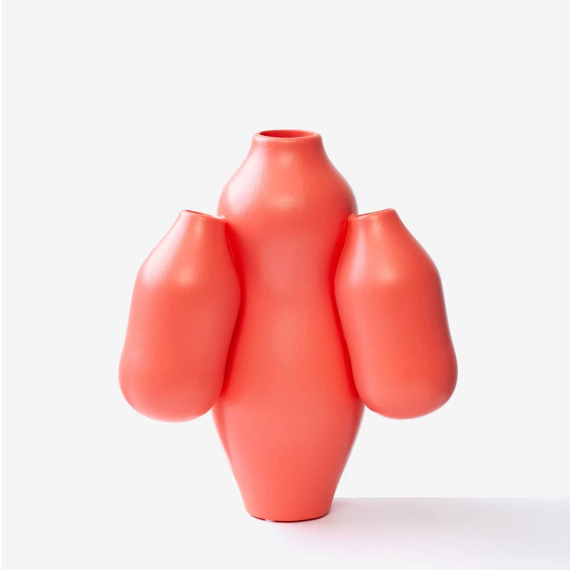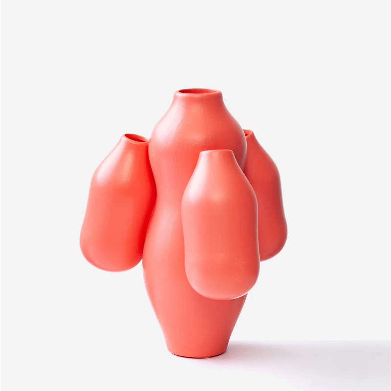 A “bouquet vase” ready to hold a unique, extravagant floral composition… Designed by Jean-Baptiste Fastrez, the Allpa vase has a strong visual impact. A true work of art, this eccentric sculptural piece can be displayed in our interiors as decoration or used to hold flowers. This vase is made of glazed ceramic in northern Italy. Each piece is the result of very meticulous craftsmanship. Allpa consists of a large central vase to which three small vases have been added. The vases merge to create a profuse asymmetrical assembly. The name Allpa comes from Inca mythology. It’s the name of the goddess of fertility, with multiple breasts. To create a superb composition, you can decorate the containers with different flowers. A graduate of Ensci (National School for Industrial Creation), Jean-Baptiste Fastrez took his first steps under the direction of François Azambourg, then the Bouroullec brothers. Since then, he has ploughed his own furrow: hybrid and ultra-creative! For him, the items should have character and cause astonishment, disturb even.