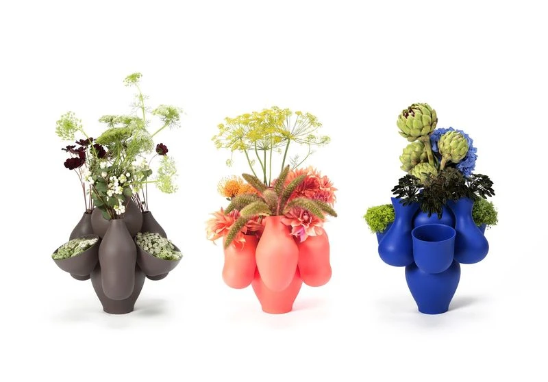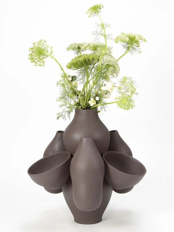 A ‘vase bouquet’ that can hold a unique, extravagant floral display. Designed by Jean-Baptiste Fastrez, the Pacha, Allpa and Qucha vases have a strong visual impact. These sculptural and eccentric pieces are real works of art that can be displayed inside the home as both ornaments and flower vases. These vases are made in enamelled ceramic in Northern Italy. Each piece is a result of painstaking artisan workmanship. Pacha, Allpa and Qucha are made in the same way: A large central vase (identical in all three styles) to which six smaller vases in different shapes have been attached. The vases merge to create a bounteous asymmetrical assembly. The distinctive character of each vase comes from the way in which the smaller vases are repeated and harmonise with the central vase. The names Allpa, Qucha and Pacha come from Inca mythology. These are the names of the many-breasted goddess of fertility, the goddess of agriculture and the goddess of the sea. For an outstanding floral display, place different flowers in each vase. An ENSCI graduate (Ecole Nationale Supérieure de Création Industrielle), Jean-Baptiste Fastrez cut his teeth under the direction of François Azambourg, then the brothers Bouroullec. Since then he has created his own path: Hybrid and uber-creative! For him, objects must have character and provoke upset and wonderment.