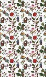 One strip is a collection of wallpaper strips drawn by graphic artists and designers. Conceived to be used and installed vertically or horizontally, they are all deployed in the width of a single strip of 50cm. Midway between illustration and trompe l'oeil, some models look for a space in this very vertical format to deploy ornamental or narrative proposals. Nathalie lete was born in 1964. She lives and works in paris. She works in many ways, mixing different techniques and mediums, illustration, ceramics, textile and painting… She is inspired by her travels, but also by the mixing of vintage toys and old engravings of flowers and animals. Her work is colourful, naive and poetic, sometimes strange, to the point of tending towards art brut. Her world is nurtured by popular and folk art.