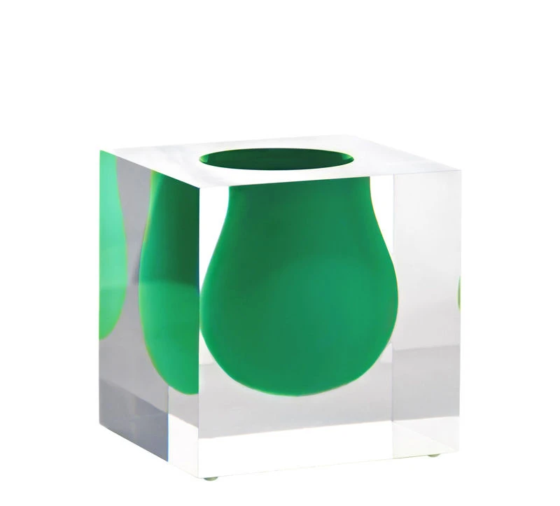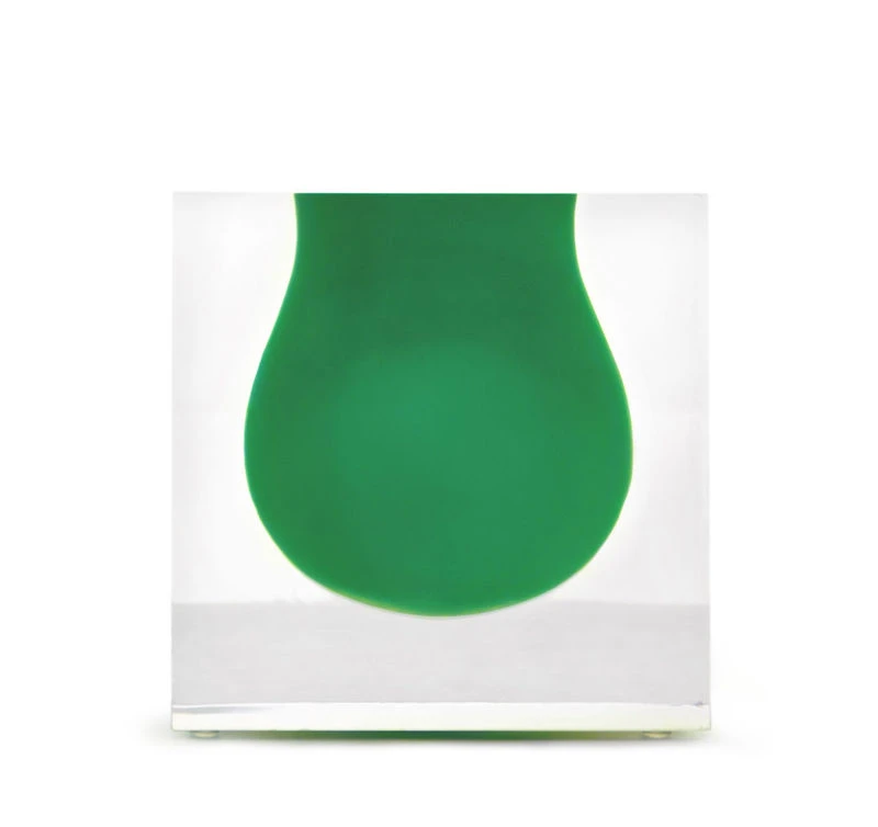 Suspended beauty… This surprising vase is writing a new chapter in terms of exacting research into forms and materials. It is made up of a colourful acrylic container with a curved and organic form enclosed in a block made from transparent acrylic. The colourful form seems to float inside of the transparent cube. The shapes overlay to form a dual-walled object, creating a subtle interplay of colours and transparency.