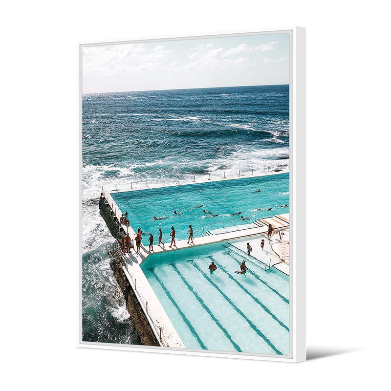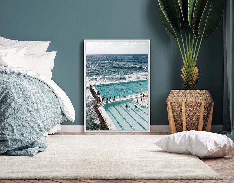 d’ trend, France. The matt printed canvas is stretched on a frame made of French maritime pine that’s PEFC-certified from sustainably managed forests. It’s framed by a shadow box. Sydney and its famous Bondi Beach swimming pool has never been so close! Take the plunge with this attractive printed canvas in soft colours that will take you on a journey each time you see it.