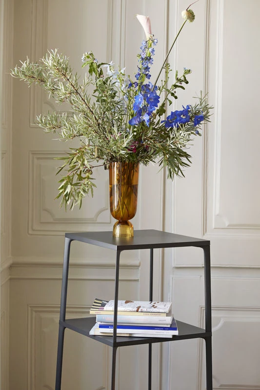 Clean lines and pretty colours for this tinted-glass vase designed by the Norwegian designer, Ingrid Aspen. Evoking an egg timer, it is made up of two domes connected by a narrow neck. A symmetrical construction with a perfectly balanced outline.