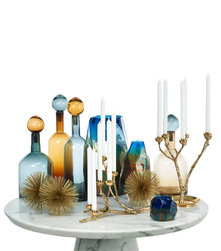 The Bubbles & Bottles collection is inspired by Murano’s magnificent glass bottles of the 60s. Each bottle comes in a different colour, with pretty, smoky, old-fashioned hues! Identical in shape, the stoppers can be switched round as you wish to create your own colour assemblies. Highly decorative, these XXL bottles dress a shelf, console or sideboard with their singular presence. They make magnificent decanters for exceptional tables!