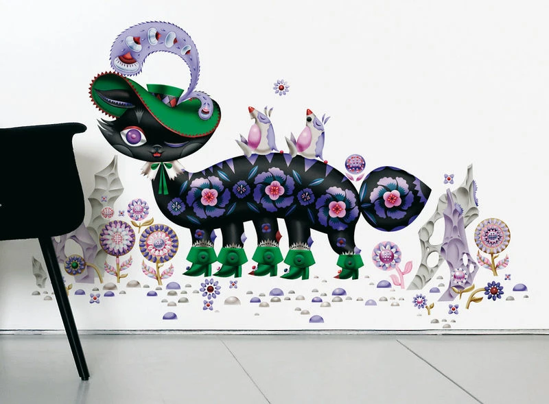 Originally Finnish born, Klaus Haapaniemi is currently one of the Britain’s leading fashion illustrators. He’s hot property illustrating everything from Christmas store windows for Selfridges London, Cacharel’s signature collection, Levis signature tee-shirts, fabrics for Marimekko, special edition packaging for PS2. His own ceramic collection with Finnish classic designer glass manufacturer ‘Iittala’, was launched earlier this year. Haapaniemi likes to play with archetypical contrasts: setting forest against cityscapes, wild animals against domesticated animals and pets, and the traditional against the contemporary.