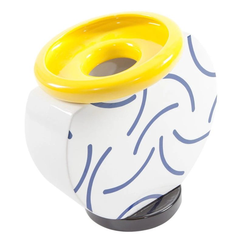 Memphis is the great cultural phenomenon of the ’80s that has revolutionised the creative and commercial logic of the design world. Created on the initiative of Ettore Sottsass and a group of young Milanese architects and designers, shortly to be joined by some of the most famous names on the internatinal design scene, Memphis overturned all the existing preconceptions around the idea of “iving”. With Ettore Sottsass as the backbone of the group, Memphis abolished the creative limits previously dictated by the industry, and Design assumed a new expressivity in the form of new shapes, materials and patterns. Thus, the Memphis movement has become an almost mythical symbol of “New Design” and its influence is still strong in many areas of production and beyond.The Cucumber flower vase was designed by Martine Bedin in 1985 for Memphis. An object not thought for simple use but for a long contemplation, the ceramic vase is a true collector’s item. Signed.