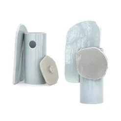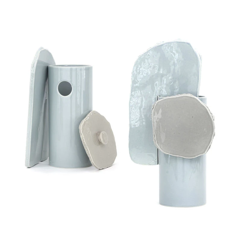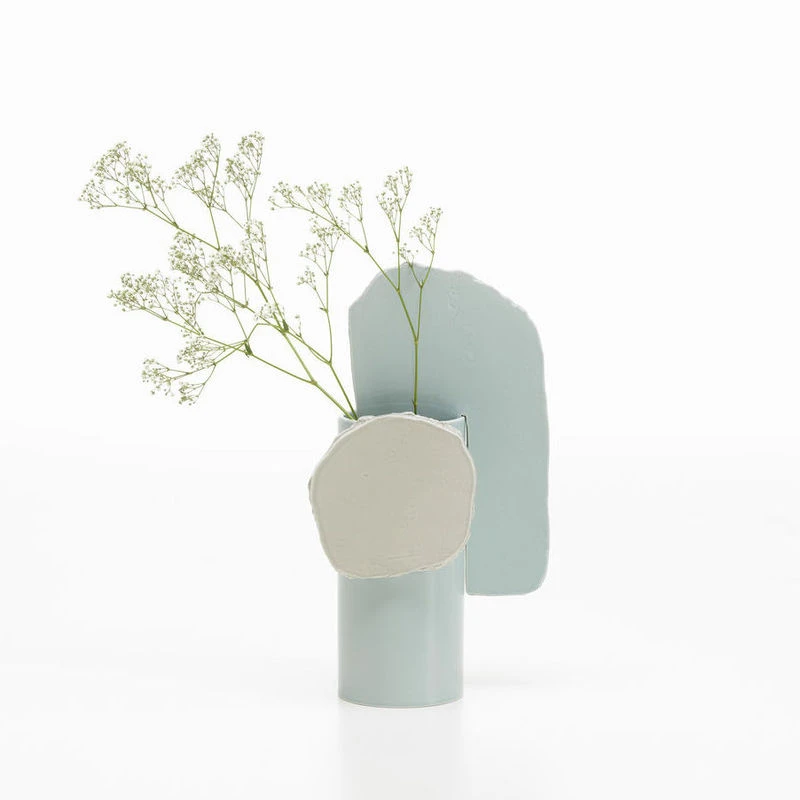 Since the early 2000s, the work of the brothers Ronan and Erwan Bouroullec has emerged as one of the most representative of the dynamism of French design. Working as a pair since 1998, the two brothers now design for many industrialists, while pursuing experimental research. Known for their formal research, particularly on vases, the brothers Ronan and Erwan Bouroullec designed the Découpage collection: amazing vases, with strong plastic and sculptural qualities. The Découpage vases are composed of a cylindrical body in enamelled porcelain on which various decorative elements are grafted in clay in fluid and organic forms. These plastic assemblies form abstract compositions that play with various combinations of shapes and colours. The decorative clay elements (plates, bars, etc.) can be removed: like a painter composing a painting, the user is invited to put together their vase. Ronan and Erwan Bouroullec: ”Each shape is cut out of a plate of clay. Some of them fit. Others stick together. Some of them stick out. Others join together. Each cylinder is cast. All of them are figures of a unique and capricious composition.” All the elements are hand-dyed. With their irregular contours, they have a distinctly handcrafted appearance. Together they make up poetic compositions that look different from every angle. whimsical, ironic, unusual, lively. Ronan Bouroullec explains: ”The arrangements are in a delicate balance, as contrasting colors and layers converge to create a new harmony.”