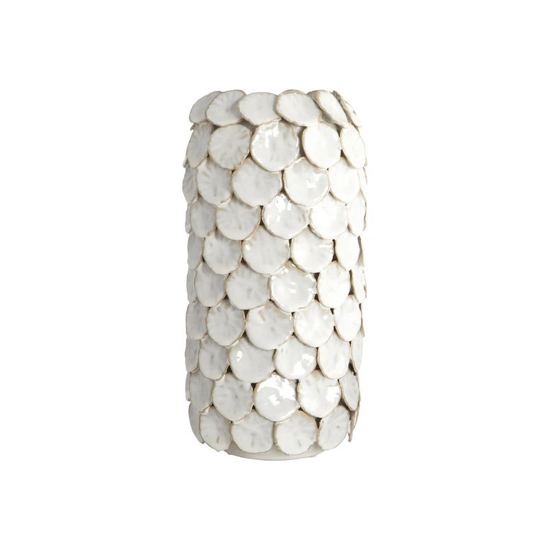 An unexpected texture for this vase of singular beauty! The Dot vase is covered with ceramic tablets superimposed on top of each other like scales. Incredibly tactile, this fragmented 3D surface embodies an organic sensibility and arouses poetic sensations. This vase injects an unexpected, calm and authentic atmosphere into your decor.