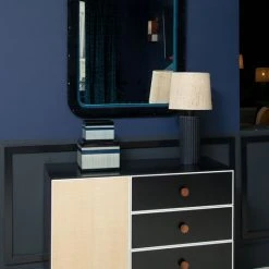 This lacquered wooden box with a high gloss finish illustrates the timeless, chic style of Sarah Lavoine. You will find the iconic stripes of Sarah Lavoine on it, as well as the leading hues of the brand. This box is a concentration of sophisticated and glamorous style. Esmée is fashionable down to the smallest detail: the inside is upholstered with black velvet.