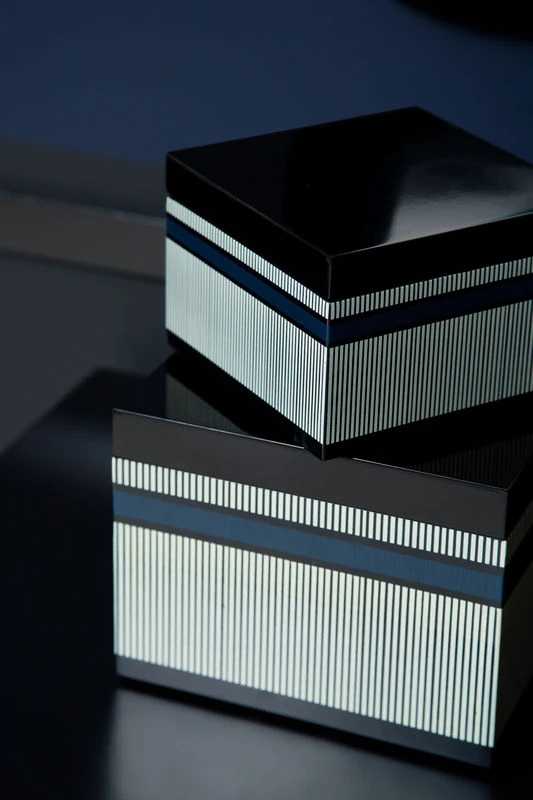 This lacquered wooden box with a high gloss finish illustrates the timeless, chic style of Sarah Lavoine. You will find the iconic stripes of Sarah Lavoine on it, as well as the leading hues of the brand. This box is a concentration of sophisticated and glamorous style. Esmée is fashionable down to the smallest detail: the inside is upholstered with black velvet. This compartmentalised jewellery box allows you to efficiently organise your jewellery.