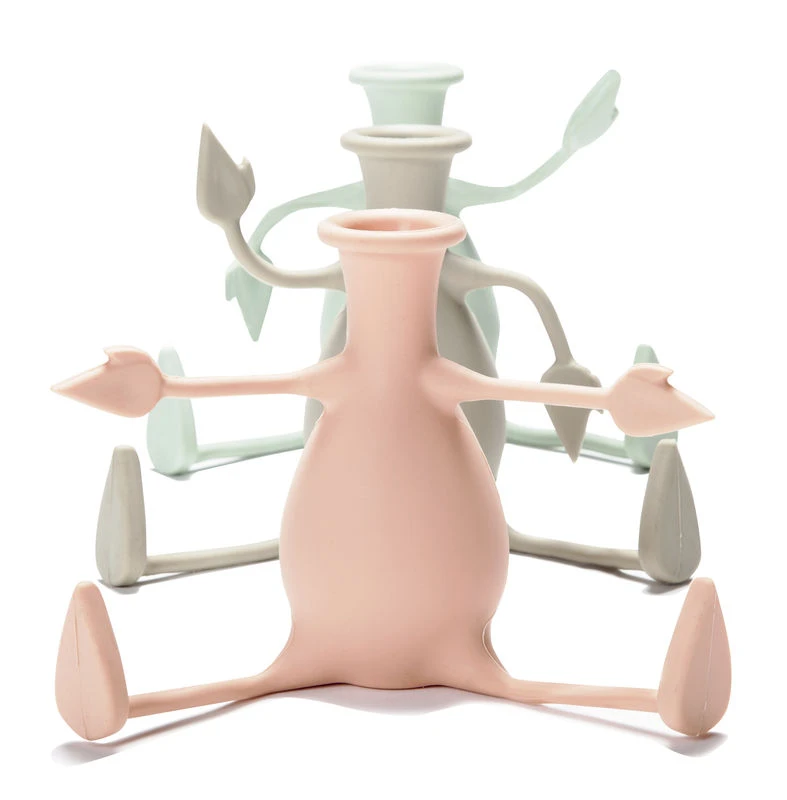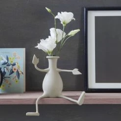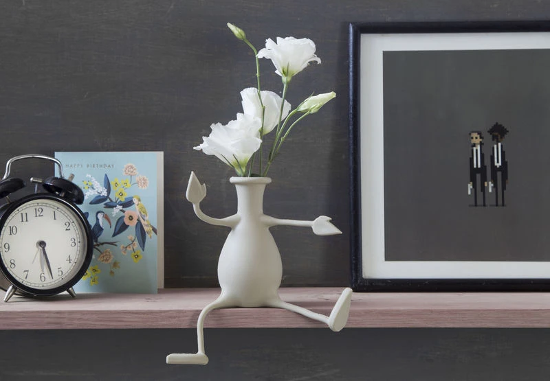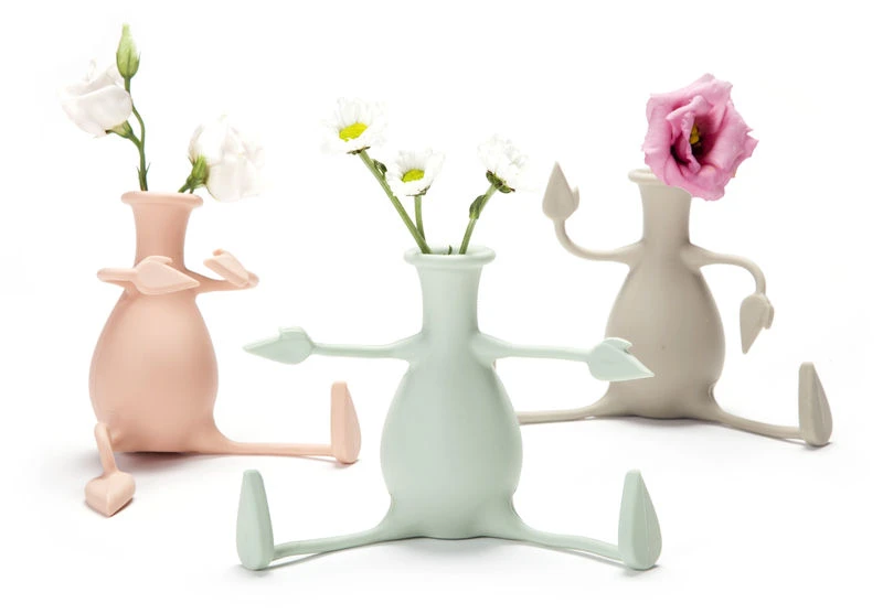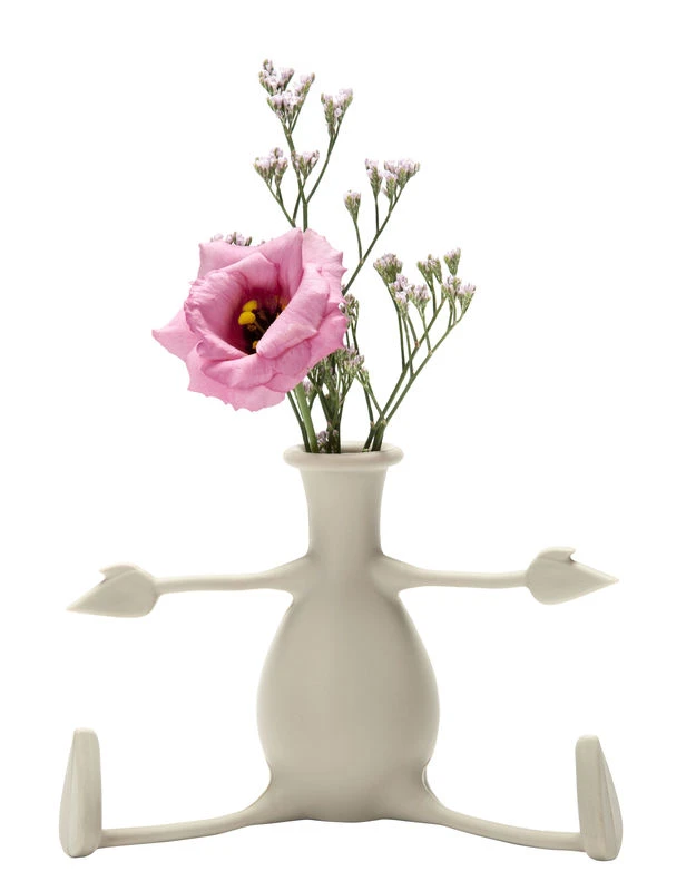 This sweet little vase is quite a character! With his flexible arms and legs you can place him in whatever position you like. Just fill him up with water, add some flowers, and he will brighten any room or office.