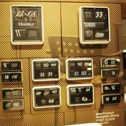 | Characteristics | Twelve different typefaces (Bodoni, Reporter, English script…) show hour, minute, day, month, etc. – Battery powered |