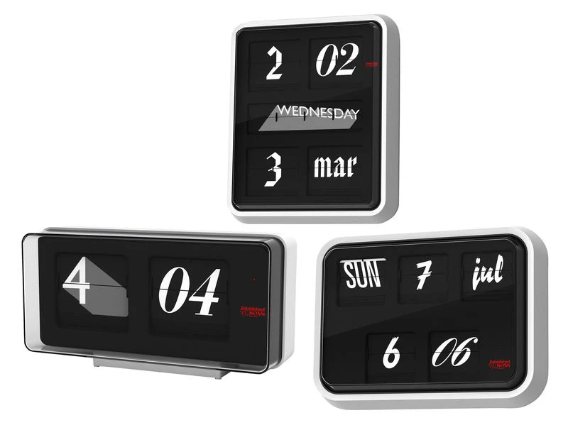 The Font Clock is a 21st century take on the british 24 hour clock design icon. Twelve different fronts are printed within the mechanism of the clock providing a random, mixed display of graphic language within a single timepiece. The essence of the idea is the twelve fonts, all chosen for their design strenght and individuality and all of which are twentieth century apart from one, an english 18th Century script… in theory, at given points within the annual time cycle, all the fonts will run together for 5 minutes.