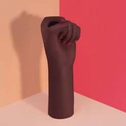 Engaged decor … New York designer Deva Pardue, a women’s rights activist, has created a collection of quirky, funky vases, a symbol of Girl Power! These raised fists with their flamboyant red nails represent the struggle by women of all origins who advocate for gender equality and rights. 5% of sales are donated to For All Womankin: this public-interest organisation founded by Deva Pardue raises funds for non-profit organisations working to promote women’s rights around the world. The raised fist, the emblem of protest iconography, is the distinctive sign chosen by Deva Pardue to embody her action. These vases are true sculptures in an arty style that has an extraordinary expressive force. These body fragments offer a surrealistic representation of the human body, reduced down to detail, detached from the figure from which they come. Evoking a human body by fragmentation also above all means evoking its missing part: these outstretched arms evoke all women, militant or anonymous, who act daily for greater openness, tolerance and respect. In addition to supporting a good cause, this eccentric, impertinent vase will become one of the key pieces of your decor.