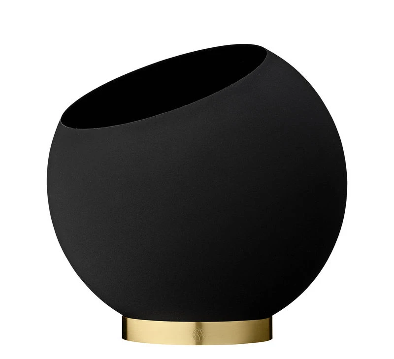 Plant luxury… A precious and sophisticated style for this flowerpot made of a black metal ball placed on a golden ring. The ball can be removed: you can direct it and tilt it on its golden base as you like. The brilliance of the ring contrasts prettily with the elegant mat finish of the ball. Globe serves as a luxurious frame to showcase your plants and flowers in an original and contemporary way. This versatile container can also serve as a bowl to put fruit in, or a trinket bowl.