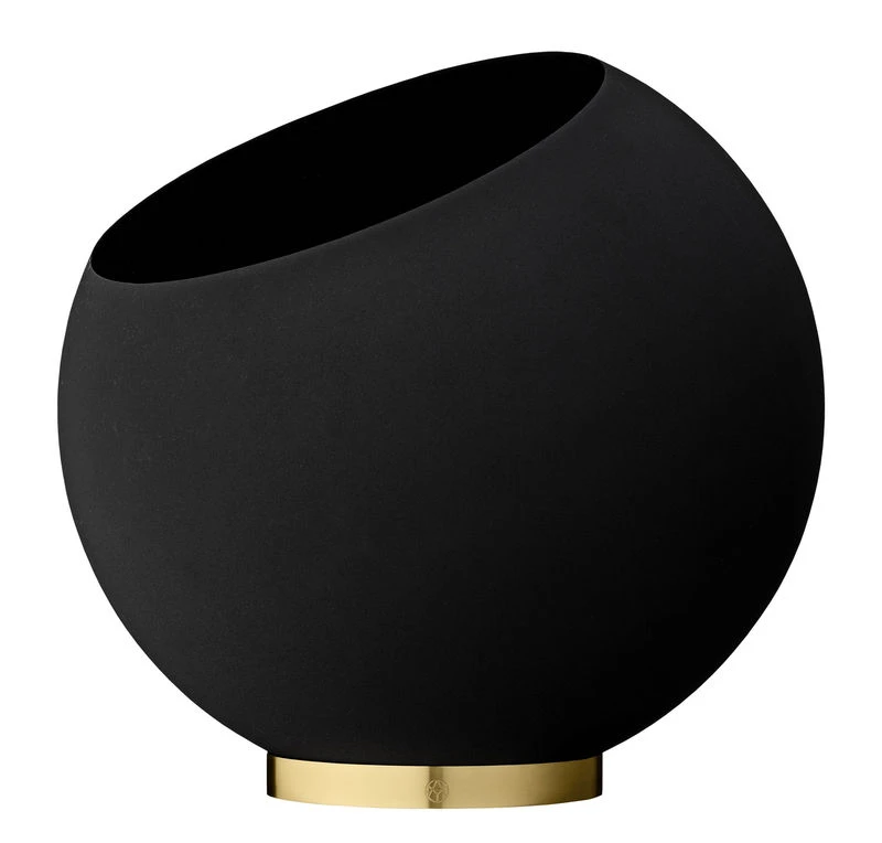 Plant luxury… A precious and sophisticated style for this flowerpot made of a black metal ball placed on a golden ring. The ball can be removed: you can direct it and tilt it on its golden base as you like. The brilliance of the ring contrasts prettily with the elegant mat finish of the ball. Globe serves as a luxurious frame to showcase your plants and flowers in an original and contemporary way. This versatile container can also serve as a bowl to put fruit in, or a trinket bowl.