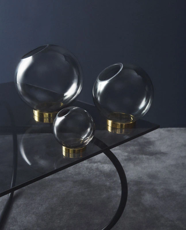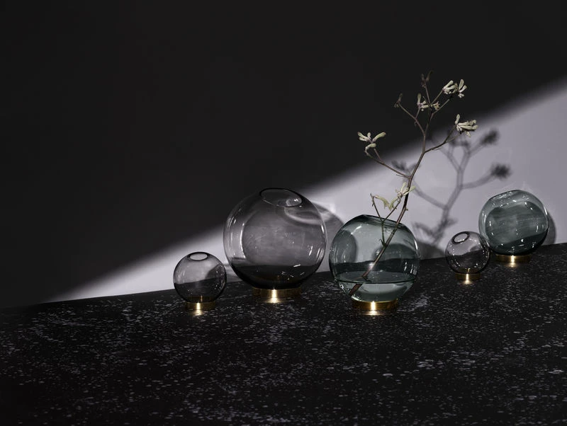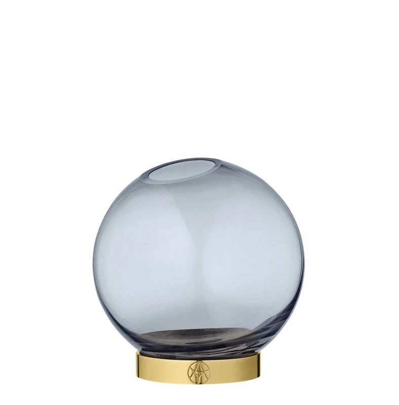 Very refined, the Globe vase consists of two dissociable parts: a bubble of smoked blue blown glass on a brass ring. The glass part is mobile: you can adjust it on the brass base. Globe will show off your flowers and small items with elegance. Suitable for food use, it’s a versatile container.