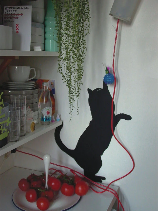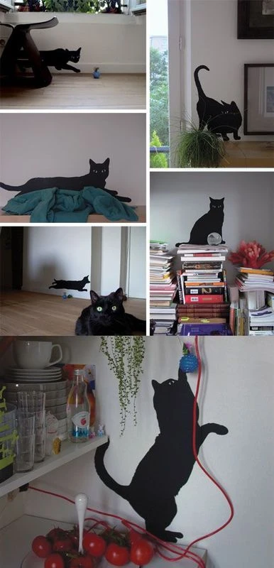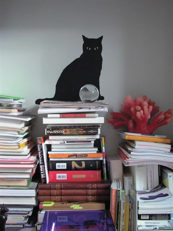 Vynil, an alternative to wallpaper As a true alternative to wallpaper, the Vynil collection, named from the material from which it is made of, gives the hand to the final user who, incited to turn his/her interior into a space of self-expression, becomes the designer of his/her own decoration. Vynil turns the « wall space » into a playground where composition and story telling are open for innovation. Free yourself from the constraints brought upon you by wall paper and let the Vynil collection, beyond the sheer practical benefits that it brings – you no longer need glue nor a specific table – help you rethink the importance and role of the ornamental motive for your home. Easy to install, self-adhesive, just pick your model out of the collection, compose the visual representation by yourself, and dress up a wall, door, piece of furniture… in your own home. Pointed out in 2003 for the Réanim project, a medicine for objects, 5.5 designers started many relationships with big companies (Arc, Ozé, Bernardaud, Galeries Lafayette…). They are determined to propose consuming alternatives while keeping a functional and funny conception. Guitou the cat is a kit of 6 cats stickers, designed in different ways.