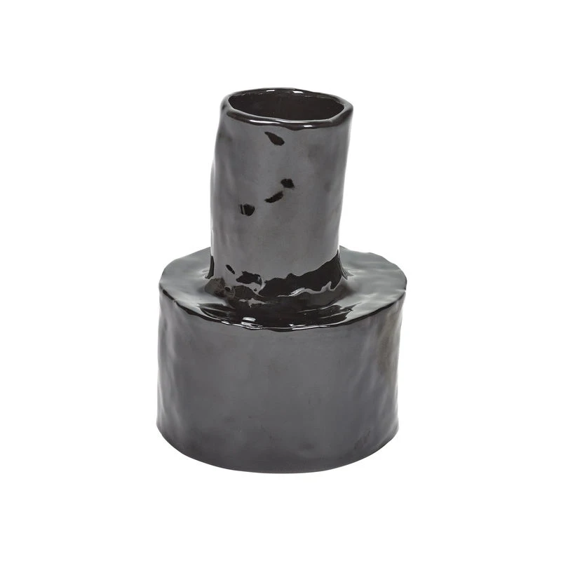 The five Héléna vases, in dark brown (almost black) sandstone, represent the first foray of Belgian artist Marie Michielssen into ceramics. Those who are familiar with Marie’s work know that she likes to let her hands lead the process. On this topic, she’s previously said that the repetitive nature of the actions use in modelling with plaster and papier-mâché meant that it was like meditating for her. The switch to ceramic thus wasn’t a big change. The Héléna vases have simple, cylindrical shapes, where the irregular shape of hand-modelling are clearly marked. Marie Michielssen has a preference for materials that she can mould by hand. She allows herself to be guided by her intuition, to give shape to items with an atypical and poetic look. The designer never starts by throwing down ideas on paper. No technical drawings or 3D models on the computer: she prefers to let the material express itself during the creative process by shaping it by hand. “During the modelling process, I often play with primary shapes like cylinders, spheres and squares. I bring them together to create new shapes. It’s all very intuitive.”
