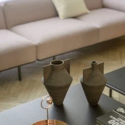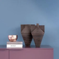 With the Jana vases, Italian designer Antonio Forteleoni brings up-to-date the magic of ancient manufacturing techniques, which originated in Sardinia. These vases and hand-crafted with raw ceramic on a traditional potter’s wheel. They are characterised by linear, geometric shapes, a coarse and irregular texture, enhanced by an earthy colour tone. With its extremely sleek geometric shape, the Jana vase has a look that is both ethnic and graphic. You can use it alone or even position it amongst other candlesticks or vases to create a stunning composition. The Jana vases are a contemporary reinterpretation of ancient ceramic art: any imperfections in the colouring or finish should be seen as precious features.