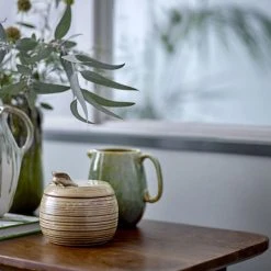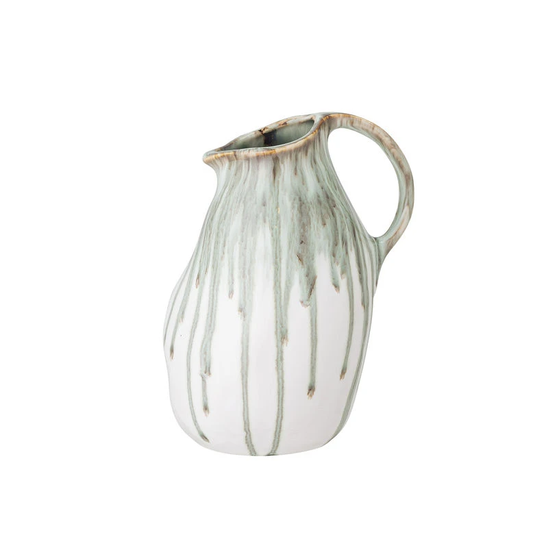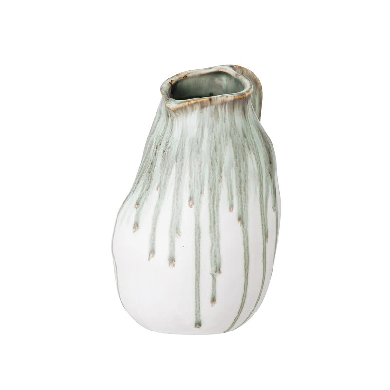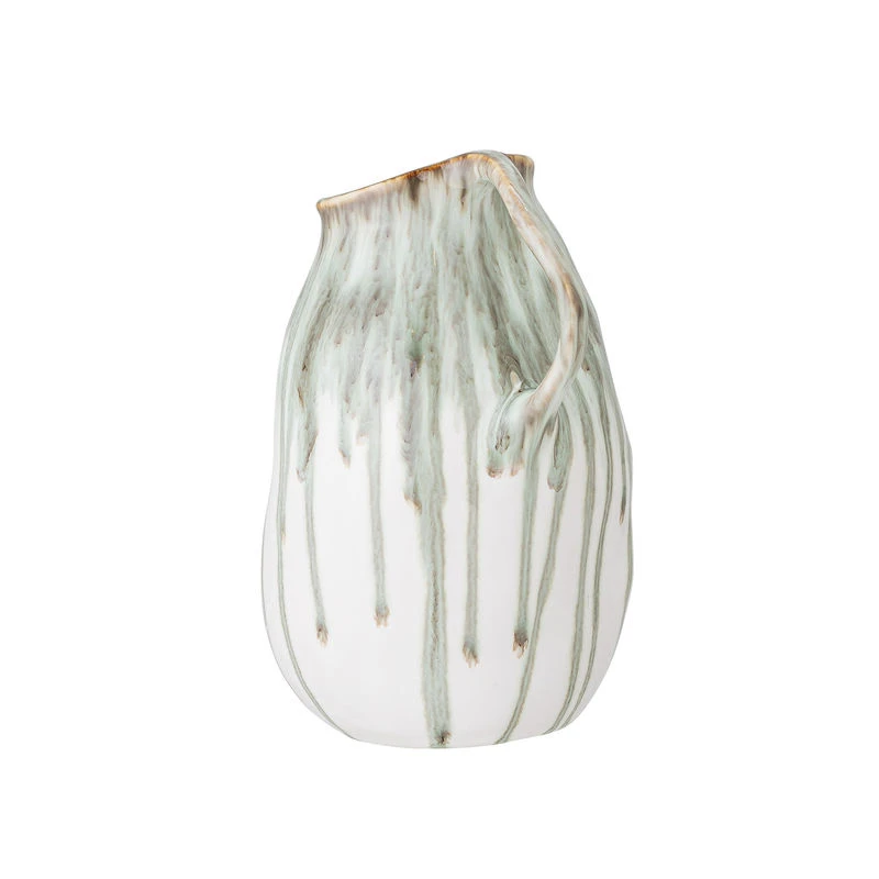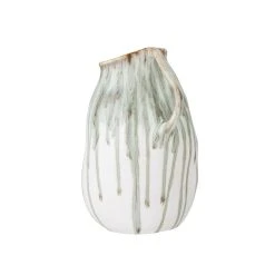 A country feel… A neo-rustic style for this glazed ceramic vase with its simple, authentic design. Reminiscent of a pitcher, the Link vase embodies the authenticity and warmth born of organic lines and material. The white sandstone with its brown undertones is covered with green streaks. Its irregular finish, as if weathered by time, reminds us of an antique object discovered in a flea market. Due to the nature of the glaze and the fact this is a handcrafted item, variations in colour may occur.