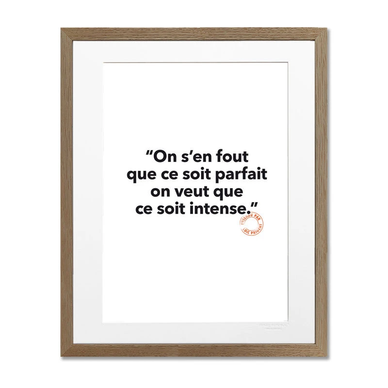 Step inside the “Image Republic” art gallery: a comprehensive selection of trendy, exclusive posters that will appeal to fans of graphic design and visual arts! These prints of exceptional quality immortalise the cult iconic images that have left their mark on our society by becoming part of history or pop culture. Collaborating with influential artists, photographers, editorial cartoonists and world-renowned illustrators allows Image Republic to offer strong, communicative images. Some deliver a message, others mark an era, a moment, have meaning, make people smile or remember. Transform your walls into spaces of expression! The fashion sphere has always been awash with killer phrases and unusual slogans… Loïc Prigent joins forces with Image Republic and collects little nuggets and joyful dialogue heard in Parisian fashion shows for us to enjoy. Loïc Prigent has made fashion documentaries for television such as Signé Chanel, Le Jour D’avant, Le testament d’Alexander McQueen, Karl Lagerfeld se dessine, Les dessins d’Yves Saint Laurent, Les dessins de Christian Dior.He also writes for Vogue Paris. Grasset published “J’adore la mode mais c’est tout ce que je déteste” (I love fashion but that’s all I hate), a collection of gems and joyful dialogue heard in Parisian fashion shows. Made in France, this poster is a professional print on matt creative paper. Print placed under a white picture mount: format with mount 30 x 40 cm / Drawing size: 19.4 x 27.2 cm