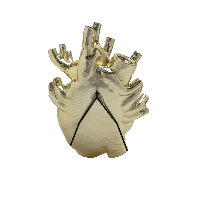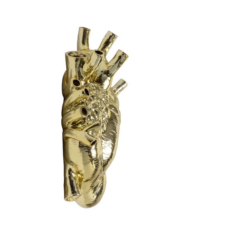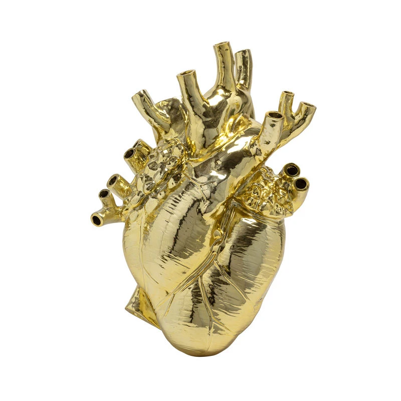 Anatomy of sentiments… Provocative, funny and absurd at the same time, the Love in Bloom porcelain vase by Seletti reproduces a human heart in an ultra-realistic way! The veins and arteries form a network of bud vases ready to contain a unique, extravagant floral composition. This giant version (H 60 cm) is made from resin. They say it’s good to have a big heart in life: So Seletti set themselves the mission of creating the biggest heart on the planet! A vase designed for all of the hopeless romantics out there, for whom a little heart just isn’t enough! Italian designer Marcantonio delivers up an ironic, surreal and subversive vision of the “seat of feelings and love”. When offering your heart, both literally and figuratively, this is the perfect gift for your beloved) ! You’ll recognise the dark humour of Marcantonio, for whom objects must have character and provoke astonishment, even if it means disturbing people. The Love in Bloom vase brings an uninhibited, eccentric, arty touch to your decor. A true work of art, this sculptural piece with its imposing dimensions can be displayed in our homes as decoration as much as being used to hold flowers.