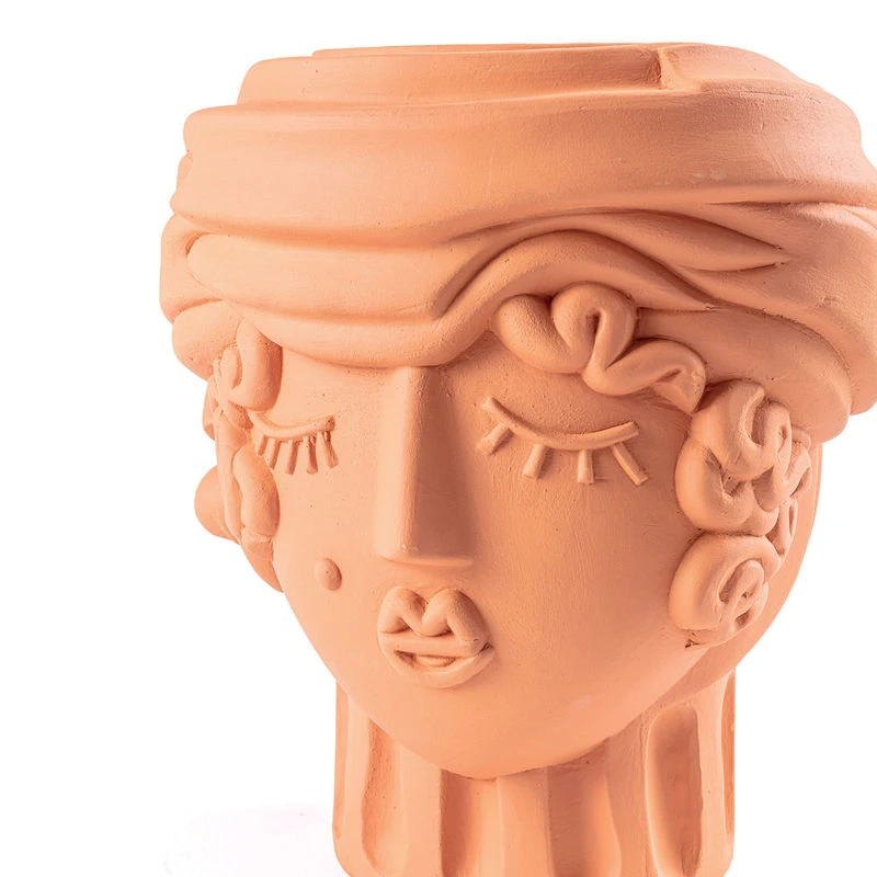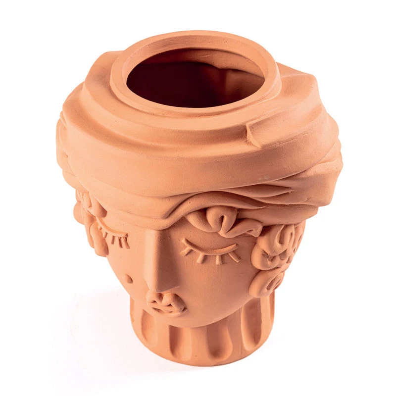 Designed by Antonio Aricò, the ”Magna Graecia” collection of terracotta objects revisits in a cartoon style the Greek relics of southern Italy. Imbued with Mediterranean culture, Antonio Aricò worked around the world before returning to Calabria where he grew up. Greek culture is very present in this region full of statues and objects. In some villages, a derivative of Greek is still spoken, more than 2500 years after occupation… With ”Magna Graecia”, Antonio Aricò interprets this Greek heritage using terracotta, all with a fun, contemporary feel. ”Magna Graecia” reflects an image thatâs more Mediterranean than Calabrian. It refers to the Great Greece of Antiquity, as well as the Roman emperors, to Sicilian traditions such as the Testa di Moro. … To create the many pieces in this collection, the designer accumulated many drawings which he transcribed in volume using 3D software. The features of these drawings were subsequently replicated identically in terracotta. … Antonio Aricò: âThis is the first time in my career as a designer that the final pieces are exactly what I designed. We find in it modernity, but also the purity of traditional manufacturing. Above all, I didn’t want to make replicas, souvenirs. These pieces are contemporary and designed in a fun way, namely that of Seletti.ââ… The pieces are adorned with familiar motifs of Doric and Ionic columns, wave motifs as well as erotic motifs such as those one discovers, as a child, on ancient vases. Among the key pieces in the collection, many busts and statues sculpted in reference to Antiquity inspired by the “Bronzes of Riace”, statues of warriors from the 5th century BC, still surrounded by many mysteries. The designer created feminine figures: women and men are thus mixed, as in Greek culture, in a certain gender fluidity. … Regarding the choice of terracotta, the designer explains: âI grew up in a carpentry workshop and I love wood, which is my favourite material. Terracotta is the same colour but more expressive in its plasticity. I like the “nude” aspect of this material, which gives it purity but not white, but warmer… … âMagna Graeciaâ tells an ancient story which, through Seletti, finds its own way of entering contemporary everyday life with irony and grace.