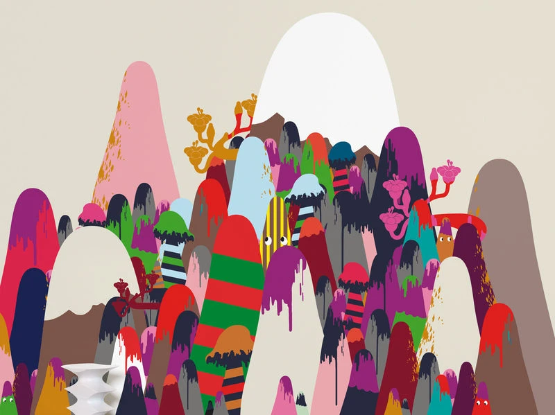 A French invention, panoramic wallpaper has gone through several waves of crazes, most often related to the health of the wallpaper industry. Its very first appearance goes back to the end of the 18th century, its expansion to the Restoration and its last breaths in the 1970/1980s. Considered to be old-hat at the end ofthe 1980s by an exaggeration of its initial interest, to open a artificial window to a realistic or fantasyexterior, the style disappeared with the photographic models caricaturing the natures of the «Four Seasons» (snow-capped summits, flamboyant sunsets, etc.) The new Domestic landscapes propose rehabilitating and reintroducing monumental decors with panoramic wallpaper by making a clean sweep of the photographic tracks explored in the past and by proposing about 10 artists, designers or graphic artists to create contemporary decors which today can justify rehabilitating this type of decor. Imagined and designed by +41, Coco Tassel, Dylan Martorell, Elisabeth Arkhipoff, Geneviève Gauckler, Ich & Kar, Jeremyville, Jon Burgerman, Klaus Haapaniemi, Kustaa Saksi, Mark Verhaagen, matali crasset, Pandarosa, Pierre Marie, Rolito, Ryan Cox, Studio Job, Tado, Timorous beasties the decors in this initial collection economise on large openings to landscapes that are sometimes dreamlike,or introspective, urban or pastoral, nostalgic or prospective and, most of the time, on a nature or a world dreamed of and inhabited by fantasy creatures. Printed on high-quality intissé paper, each decor is 4 metres wide by 3 metres high and comes in the form of eight strips to be assembled. All the decors can be cut downwards and across to adapt to all sizes of walls. Limited edition to 100 numbered pieces per year and signed by the artist.