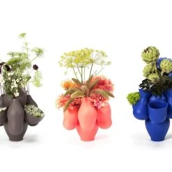 A ‘vase bouquet’ that can hold a unique, extravagant floral display. Designed by Jean-Baptiste Fastrez, the Pacha, Allpa and Qucha vases have a strong visual impact. These sculptural and eccentric pieces are real works of art that can be displayed inside the home as both ornaments and flower vases. These vases are made in enamelled ceramic in Northern Italy. Each piece is a result of painstaking artisan workmanship. Pacha, Allpa and Qucha are made in the same way: A large central vase (identical in all three styles) to which six smaller vases in different shapes have been attached. The vases merge to create a bounteous asymmetrical assembly. The distinctive character of each vase comes from the way in which the smaller vases are repeated and harmonise with the central vase. The names Allpa, Qucha and Pacha come from Inca mythology. These are the names of the many-breasted goddess of fertility, the goddess of agriculture and the goddess of the sea. For an outstanding floral display, place different flowers in each vase. An ENSCI graduate (Ecole Nationale Supérieure de Création Industrielle), Jean-Baptiste Fastrez cut his teeth under the direction of François Azambourg, then the brothers Bouroullec. Since then he has created his own path: Hybrid and uber-creative! For him, objects must have character and provoke upset and wonderment.