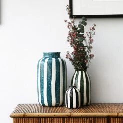 The Riviera vase transports us to the shores of the Mediterranean, to natural summer landscapes. Made in Portugal, the Riviera vase has been shaped and enamelled in the traditional way. You’ll find the beautiful stripe, iconic of the design house, in a variety of strong colours. The Riviera vase will bring warmth and authenticity to your decor.PLEASE NOTE: This vase is for decorative use only (must not come into contact with water). The ceramic used is porous and therefore not waterproof. This vase is suitable for dried or artificial flowers.