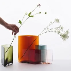 The fluidity and vibrant feel of the mouth blown glass creates the delicate character for the Ruutu vase. Ruutu, which means diamond or square in Finnish, is a collection of vases available in five sizes and seven colours.Created by Ronan and Erwan Bouroullec, Ruutu might be simple in shape but it takes the most skilled craftsmen in the glass factory to produce. The vases are mouth-blown into a steel mould and polished by hand. Each vase is a simplified masterpiece taking seven craftsmen and 24 hours to produce in the Iittala glass factory in Finland.Each Ruutu vase has the designers' engraving on the bottom.