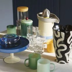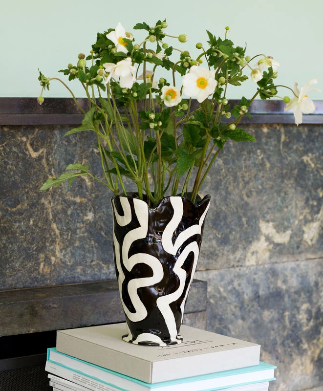 Jessica Hans is a ceramics artist based in New Mexico. Jessica’s work is inspired by her interest in nature, geology and plants. The Shadow ceramic vase is hand-painted is a real work of art. It combines an irregular surface, inspired by rock formations, with modern geometric patterns and a somewhat innocent style. The classic black and white duo adds an elegant touch to the set. The deliberate irregularity of the lines and the slight coarseness of the material gives each piece an artisanal look. The design collaboration with HAY transposes Jessica’s organic and abstract aesthetic into a functional object with a unique, hand-painted surface.