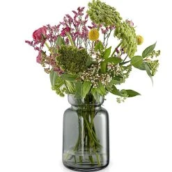 A simple look for this vase with a Scandinavian aspect made of hand-blown glass. The smoked grey colour is very chic. The elegantly curved collar holds your bouquets gracefully.