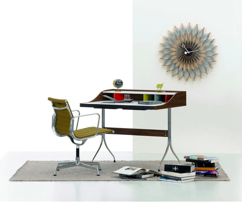 George Nelson (1908 – 1986) is considered to be one of the founders of American modernism. He contributed to the beginning of modern design with a human dimension. Renowned for his collaborations with brands such as Vitra and Herman Miller, he has created several products that are now considered to be icons of mid-20th century modernism. In 1947, the American designer George Nelson was commissioned to create a collection of clocks. Nelson analyzed the way people used clocks and concluded that they read time by discerning the relative position of the hands, so the numbers were unnecessary. Also, as most people wore wristwatches, he assumed that clocks had become more of a decorative element for homes. These ideas formed the base of the first collection of 14 clocks, consisting of a completely new style of wall clocks and compact table clocks, which was launched on the market in 1949. Although the models all have a common feature – no numbers – their shapes, colors, materials and design could hardly have been more diverse. Over the next 35 years, Nelson Associates designers created over 100 different clock models: wall clocks, portable table clocks and built-in clocks. After Nelson’s death in 1986, the Vitra Design Museum acquired his inheritance, which includes approximately 7,400 manuscripts, plans, drawings, photographs and slides dating from 1924 to 1984. Vitra launched the reproduction of the Nelson Clocks in 1999 and updates the collection from time to time. Desk Clocks are available in various shapes and materials. Equipped with a high-precision quartz mechanism, they continue to offer a new alternative to classic clocks.