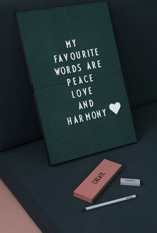 Bring your walls to life with customised messages… This set includes computer symbols to be fixed onto the Design Letters perforated board (perforated board sold separately). This set contains 20 plastic pieces. They have pins which easily slide into the hole in the grid. Fixed to the wall like a panting, you can create your own art deco! With the Figures & Letters set from Design Letters, write what you want and decorate your phrase with pretty symbols. This memo board fits just as well in a child’s bedroom: Kids can practice writing and have fun placing the elements of this set as they wish. Please note, the perforated board is sold separately.