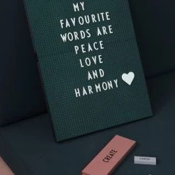 Bring your walls to life with customised messages… This set includes festive symbols to be fixed onto the Design Letters perforated board (perforated board sold separately). This set contains 20 plastic pieces. They have pins which easily slide into the hole in the grid. Fixed to the wall like a panting, you can create your own art deco! With the Figures & Letters set from Design Letters, write what you want and decorate your phrase with pretty symbols. This memo board fits just as well in a child’s bedroom: Kids can practice writing and have fun placing the elements of this set as they wish. Please note, the perforated board is sold separately.