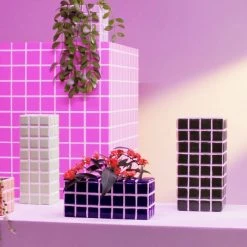 Mosaic trend… An ultra-graphic effect for these cheerful, colourful vases, made up of small ceramic squares assembled by white joints. This raised texture is fun and very tactile. Tile vases come in a superb palette of vibrant, delicious colours.