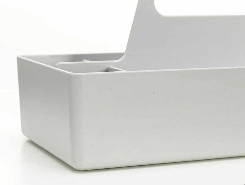 Designer Arik Levy revisits the classics and delivers a playful and colourful version of a toolbox. Available in a superb palette of current colours, these plastic storage units have an industrial, quirky, trendy look. Fitted with compartments of different sizes and a handle, that are easy to clean, they are both decorative and ultra functional. They let you organise everything: from the kitchen to the office, without forgetting the bedroom, the bathroom… To add zest to your decor, you can mix the colours! This eco-friendly version is made of recycled and 100% recyclable polypropylene, manufactured from household waste, particularly from used packaging. The dark grey colour of the RE Toolbox is the natural shade of the processed recycling material, which therefore has very slight irregularities in its colour.