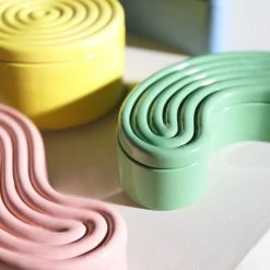 We’re obsessed with these delightful and graphic porcelain jars. They’ve been developed to create a stunning harmony of geometric shapes and sharp colours. Use them in the kitchen to store sweets or sugar, or elsewhere in the house to tidy away small desk accessories, jewellery, cotton buds, etc.
