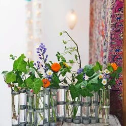 Farandole of flowers, the April vase is constituted of twenty-one glass tubes and of twenty metallic similar pieces that assemble themselves. These can turn the a by report to the others, you can thus dispose his vase in accordion or in all the wished positions. You can equally, after to have removed a tube of the one of the extremities, compare these and close the vase some curls while restoring the link that lacks. The pieces can return to normalcy independent of one another: it suffices to pull the one of the tubes up to fragment the vase in two distinct segments. You can therefore to shorten it, but especially, if you possesses several, lengthen them. To transport it easily, it is necessary to muster the pieces against one another, then to catch it to two hands. The April vase is provided with a replacement tube. The zinc that protects the metallic pieces of the April vase already lightly is oxidized, and to the contact of water, it becomes completely checkmate, and decorates itself of a light white similar rust to a frost.