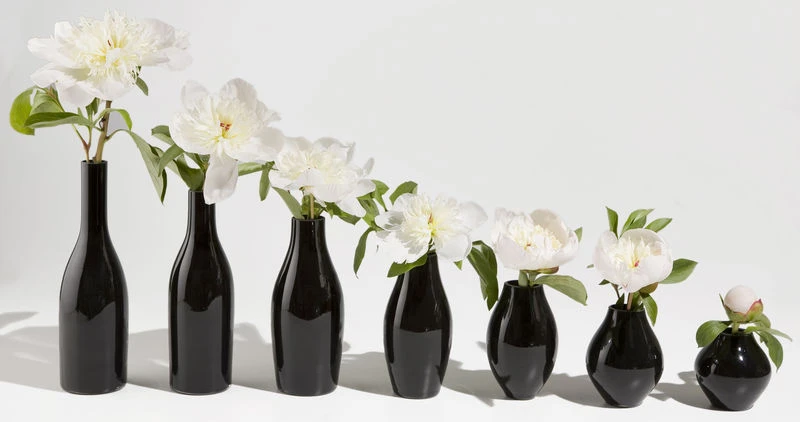 The Vase of the Seven Nights declines themselves in seven states. Following step by step the eclosion of the flowers, seven aligned forms indicate the decisive steps that change a ball, small and pudgy, in long slender flask. His black color plays with the transparency and the light.