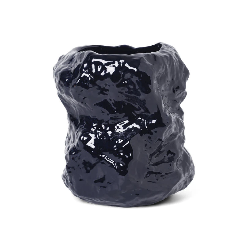 The Tuck collection celebrates imperfect forms. This vase is made from vitrified stoneware from a hand-made prototype. Its irregular bumpy surface gives a craft impression and highlights the raw and authentic look of this creation. Primary and primitive, these imperfect forms draw the eye. The highly glossy finish reflects the light.