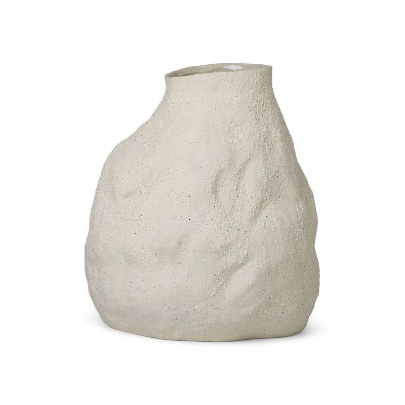 Raw nature and a return to basics… Arts & crafts trend for this collection of Vulca vases which showcases raw material and imperfect shapes. Made of enamelled stoneware, these vases are available in different raw mineral textures, treated in their simplest form in a natural colour palette mixing white, pinkish beige and grey. These incredibly tactile surfaces evoke eroded stone, marine coral, the bumpy, rough surface of animal skin… Wild and untamed, these mini-vases embody an organic sensitivity and arouse poetic feelings. It’s the grain of the material, its roughness, its irregularities, all its small defects that give it character. Far from the usual straight lines and codes, the irregular organic shapes seem to be forged in the ground or cut in stone. Primary and primitive, these imperfect forms draw the eye. Once placed into our interior design, these vases inject an unexpected, calm and authentic atmosphere into the decor.