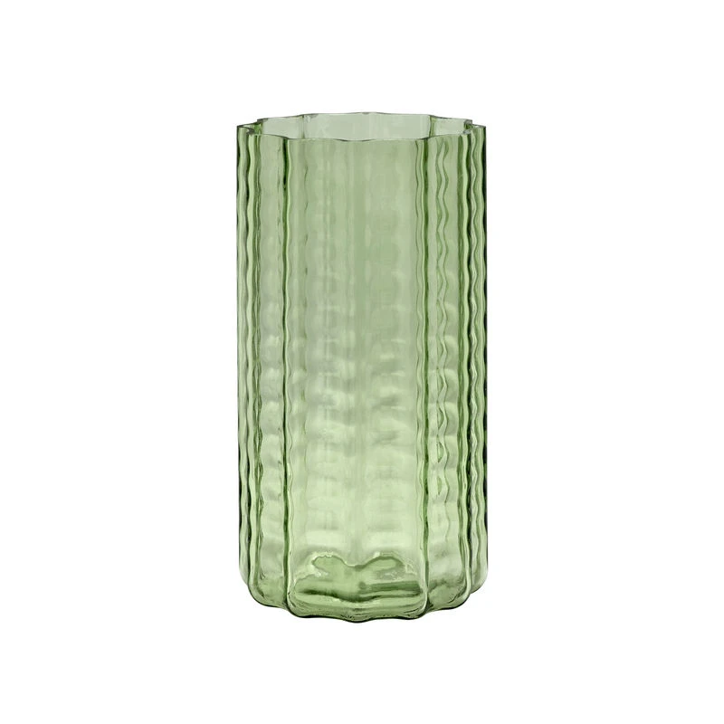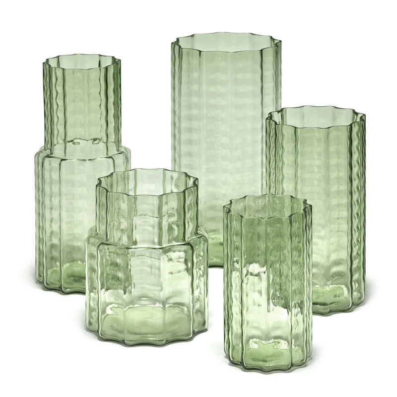 Wave is a hand-blown glass collection inspired by the immense windows of the MAS Museum in Antwerp, which is an architectural marvel. In the eyes of Belgian designer Ruben Deriemaeker, these panes of glass are a sublime masterpiece that gorgeously embodies the glass material and the infinite possibilities of its uses. Given the characteristic shape and textured surface of the vases, he opted for an authentic and discreet colour – a very pale green – which allows the shape and material to keep the spotlight.